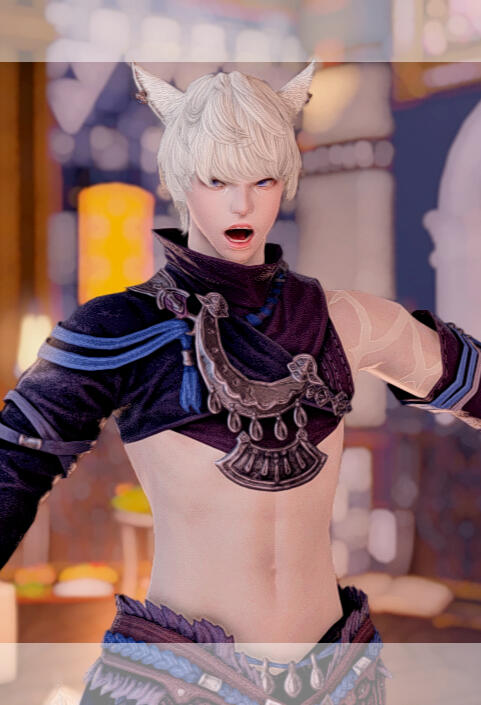 "What do you want me to say? I used to be a fighter and now I'm here. For private reasons, I don't go adventuring any more. I like to stick to myself, but for more private reasons, I opened the Host Club. I'm not sure if it's made my life worse or better. Not sure I prefer managing a bunch of miqote over fighting primals and helping people..."
