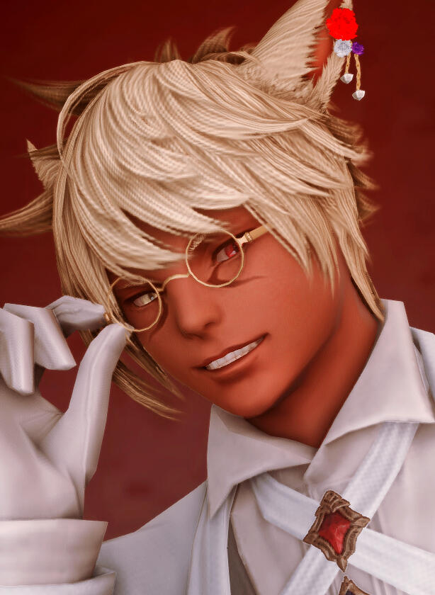 " My name’s Akil Phoebus, but you may call me Akil! I’m a travelling doctor from a distant land that taught me everything I know about medicine and magick. I came to Eorzea along with some close friends of mine but spend most of my days with my travelling partner and lover, Noctis. We would go on all kinds of adventures, solving mysteries or helping those in need! Despite myself being a medic and mostly making sure everyone is in good health, I also fight along side everyone with either my bow and arrow as a Bard or using my offensive magicks as a Black Mage! With the tactical knowledge I gained along side my medical studies, I do my best to support my allies. In my free time…well, I do enjoy a good book! I’d also write or play music too! …I should think about bringing my Lyre… ah-! Sorry, got distracted. Many say I’m carefree and cheerful all the time, always enjoying a joke or a tease, but if I see someone being unjust or rude to myself or anyone I care for, I’m not afraid to speak my mind. …ahem—but just as long everyone behaves, I’m happy~. ♫ "